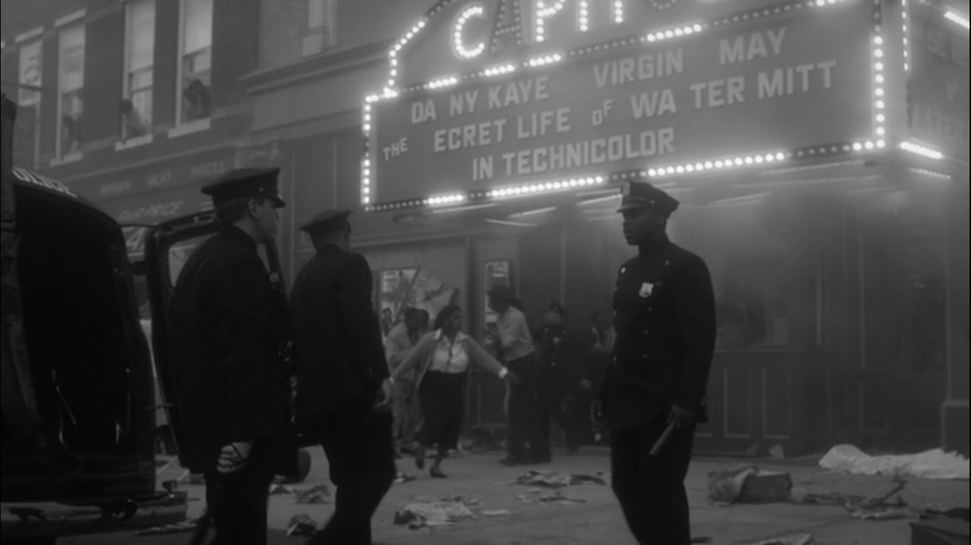 As Will’s life goes on, even having a son- Marcus- he continues his routine as Hooded Justice. He reads over reports of Klan violence and lynchings when we cut to a riot in progress at a theater. The officers tell Will that this is what happens when you put animals in the same cage. One officer tells Will to go in and help calm things down, since he apparently speaks their language.