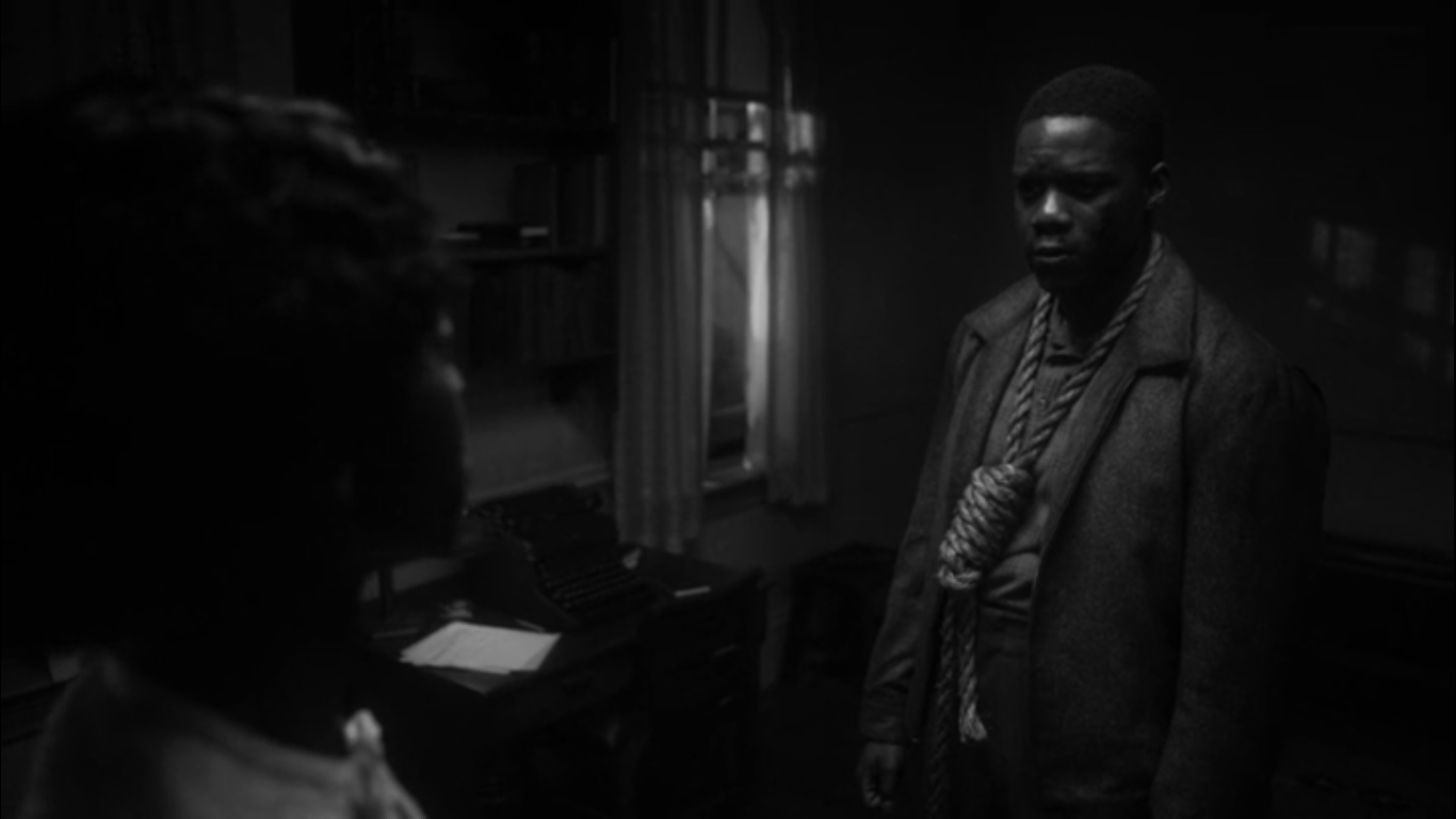 One thing that came to mind when thinking about the flashbacks is the use of color. While everything in the past is presented in black and white, we see the occasional flash of color, both with Will’s mother playing the piano and when we see the Black bodies being dragged behind the police vehicle. To me, these moments represent emotional bursts in Will’s past, thus making them stick out in a black-and-white world.
