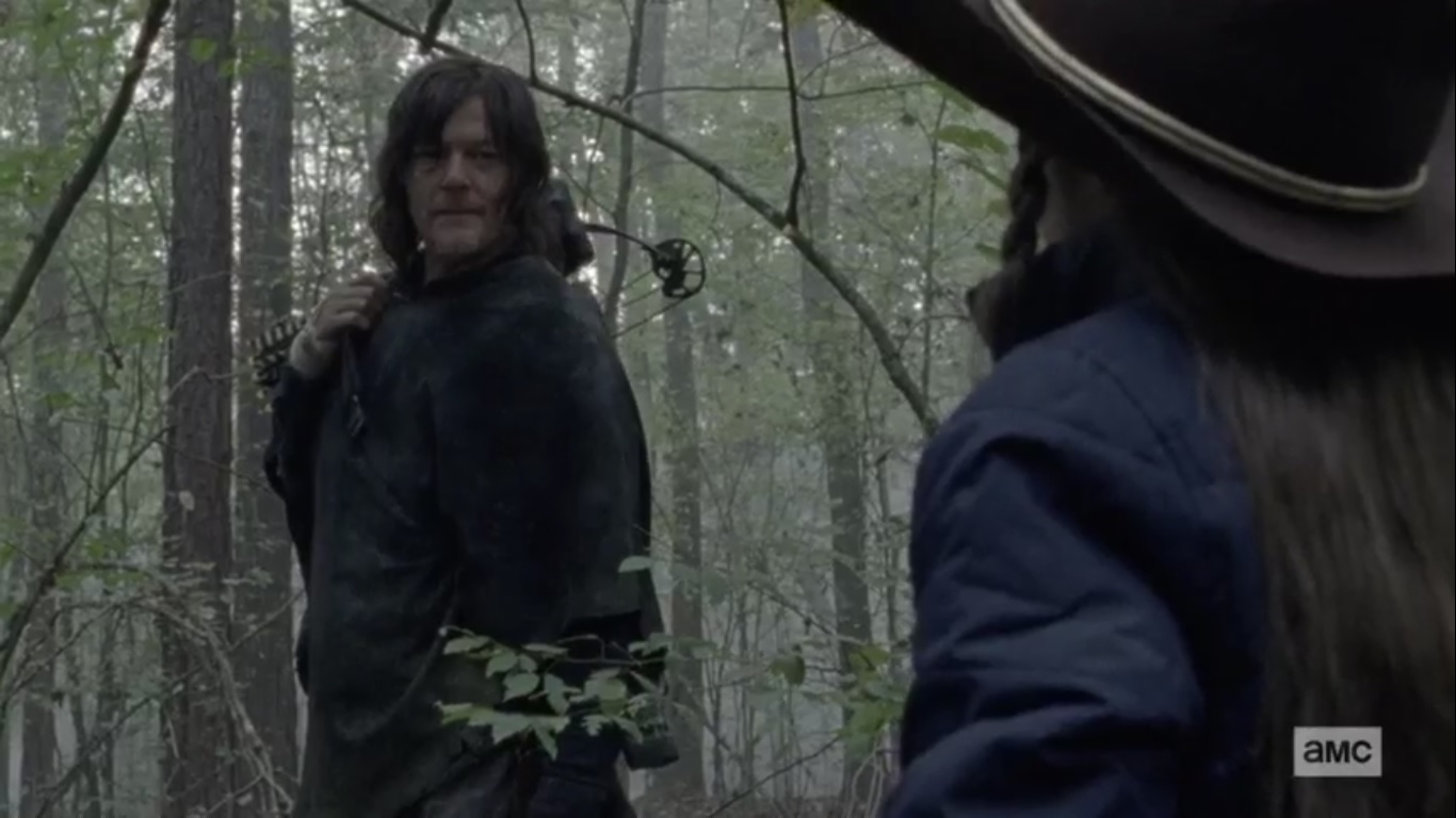Not everyone’s here, though. Daryl is out in the woods and tells Michonne via radio to not come home. She’ll only find them if she answers him. He’s got a plan to end this, though being on a run like this reminds him of the good old days, which feels like ages ago. Despite calling out Michonne’s name, Daryl receives no answer.
