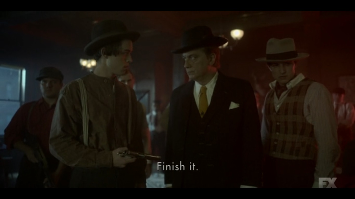 We then jump to the Irish bar as one young man announces that there’s a double cross at play. Before they can do anything, men storm the bar. Another shootout ensues, but before the head is killed, he promises a curse will be placed on the opposing family.