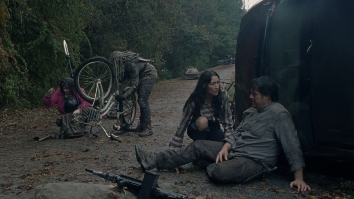 Luke, Magna, Jules, and Jerry have made it across the herd and await the others, though Jules wonders whether they’re the only ones who could make it. Daryl and Kelly soon join them, but no sign of Carol and Beatrice yet.