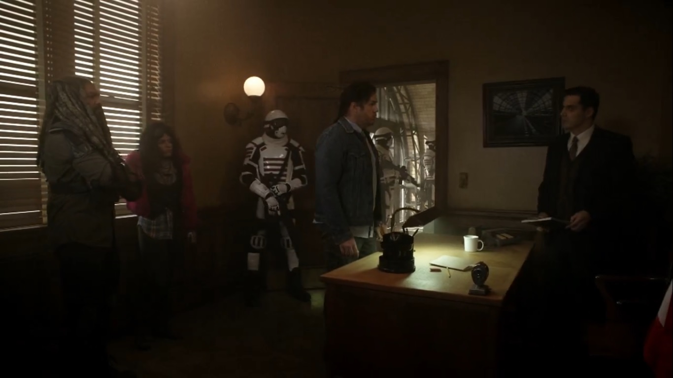 In enters Lance Hornsby, who demands that the asylum seekers be let go. Also, Mercer is to be notified. When Lance leaves, Stephanie tells the three that they can trust him. He can stop them from being banished, but they’ll still have to pay for what they’ve done.