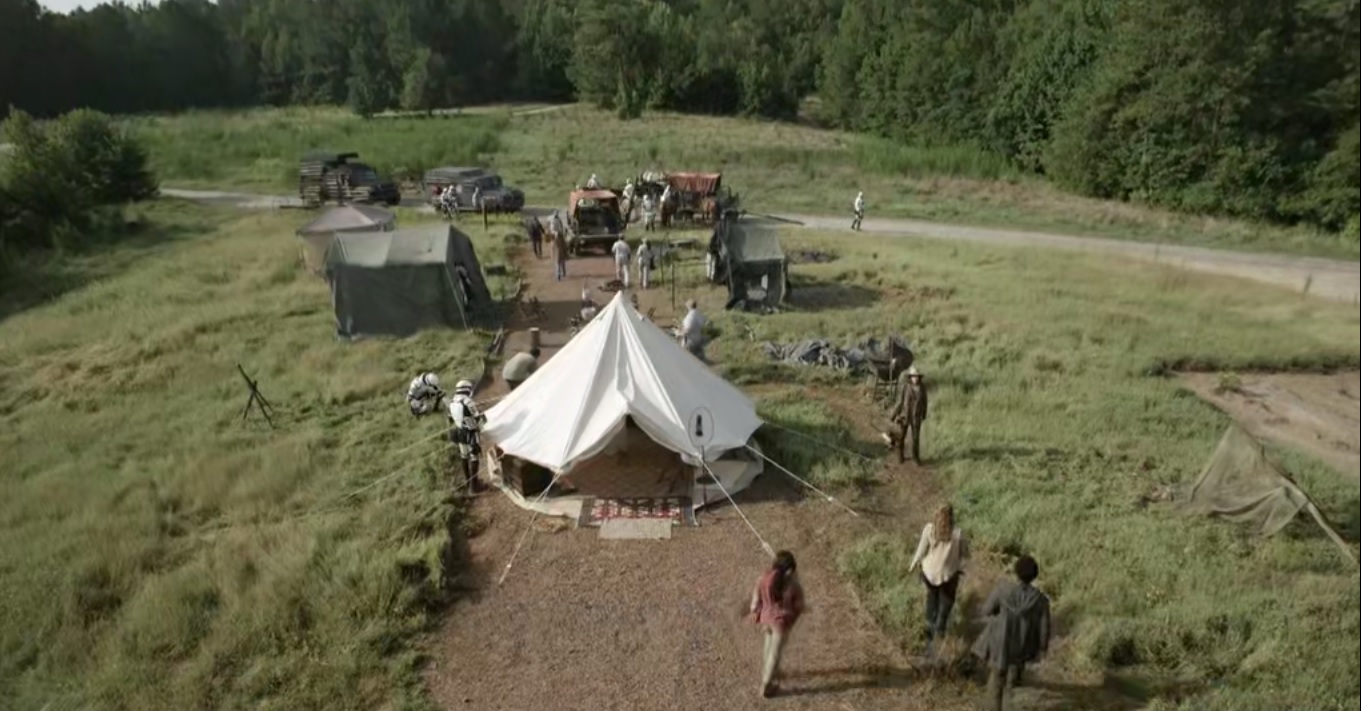 As if on cue, the convoy comes to a stop when it spots Maggie, Lydia, Dianne, and Elijah dealing with some walkers. Though they dispatch the walkers, the four don’t have time to shower the blood and filth covering them. Still, Pamela is delighted to meet Maggie.