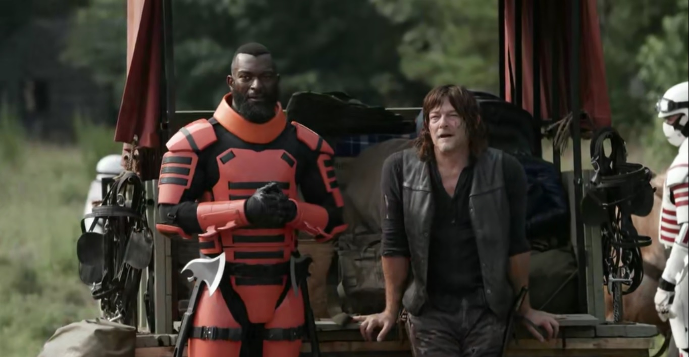 So when the Commonwealth convoy- Daryl included- arrives, Aaron takes Pamela, Lance, and Mercer on a tour of the community and explains that the engineering plans came from Maggie Rhee, the leader of an allied community. As for security, Daryl tells Mercer that the community fought a lot of fights. When Mercer asks what Daryl did before this, Daryl responds that it doesn’t matter. Not to any of them, anyway.
