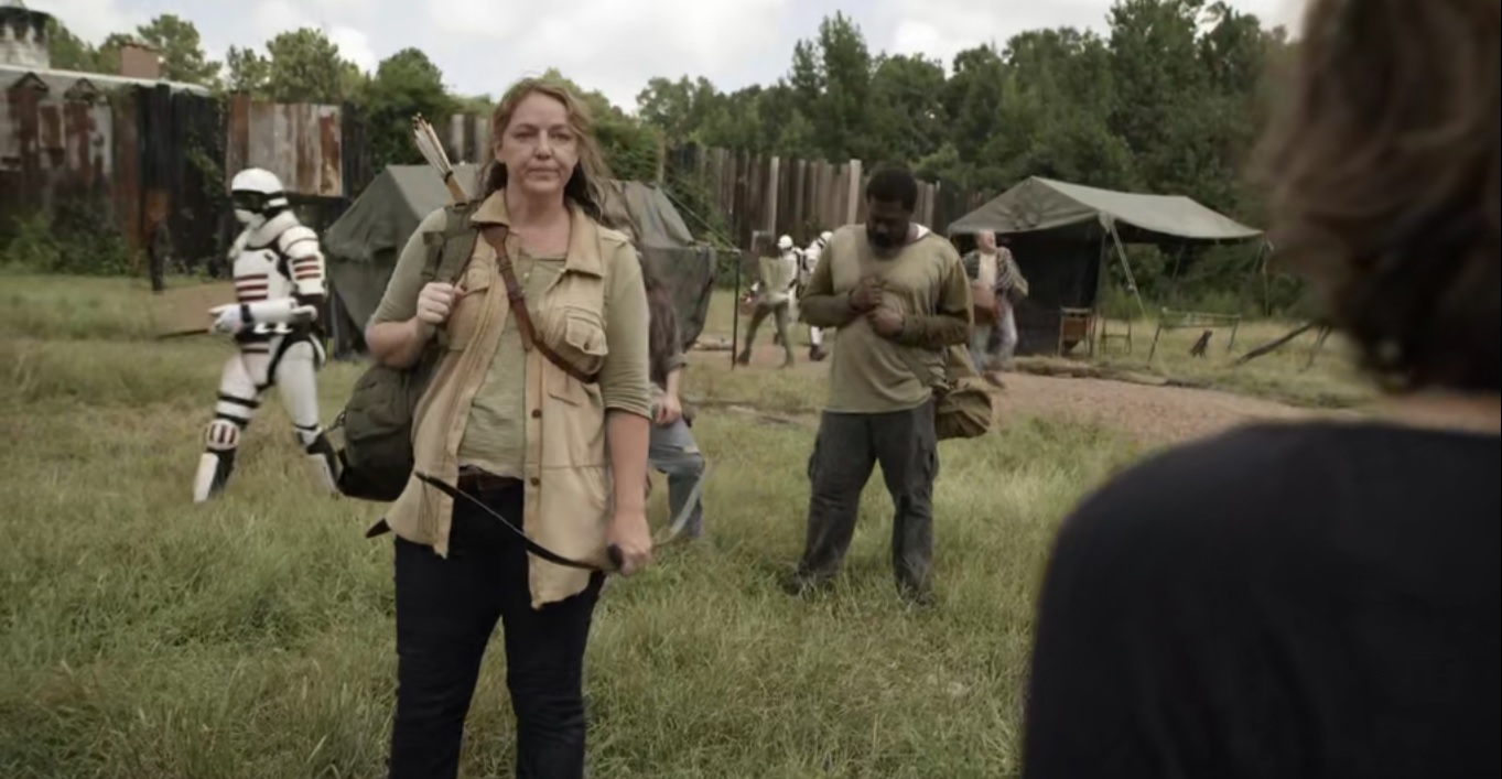 As the Commonwealth convoy packs up to depart, Maggie says her goodbyes to Daryl before getting a dose of big news: Dianne and a few others are leaving Hilltop. Maggie cautions Dianne on who she trusts, but Dianne counters that Maggie needs to know when to ask for help. It’s harder than it’s ever been, but it doesn’t have to be. Dianne respects the hell out of Maggie, but she can’t do this anymore.