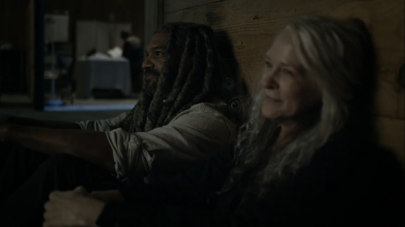 Over at the makeshift clinic, Carol admires the work that Ezekiel put in, but he’s just happy to have a fresh start and it was important that Carol know how much he appreciated that. Carol, meanwhile, is thinking about the world, the dark years, and how after everything, Ezekiel is a light in the darkness. But this light came from a spark that Carol helped him find.