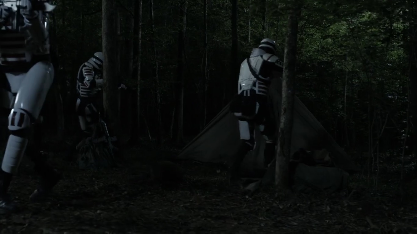 So what’s Leah doing with those weapons that she stole? We join her in the woods as she works on the firearms. She heads into her tent for the night just as Commonwealth soldiers approach. But Leah isn’t stupid. As the soldiers inspect the tent, they find it empty. Leah has fled through the other end. From the darkness, she fires at some of the soldiers.