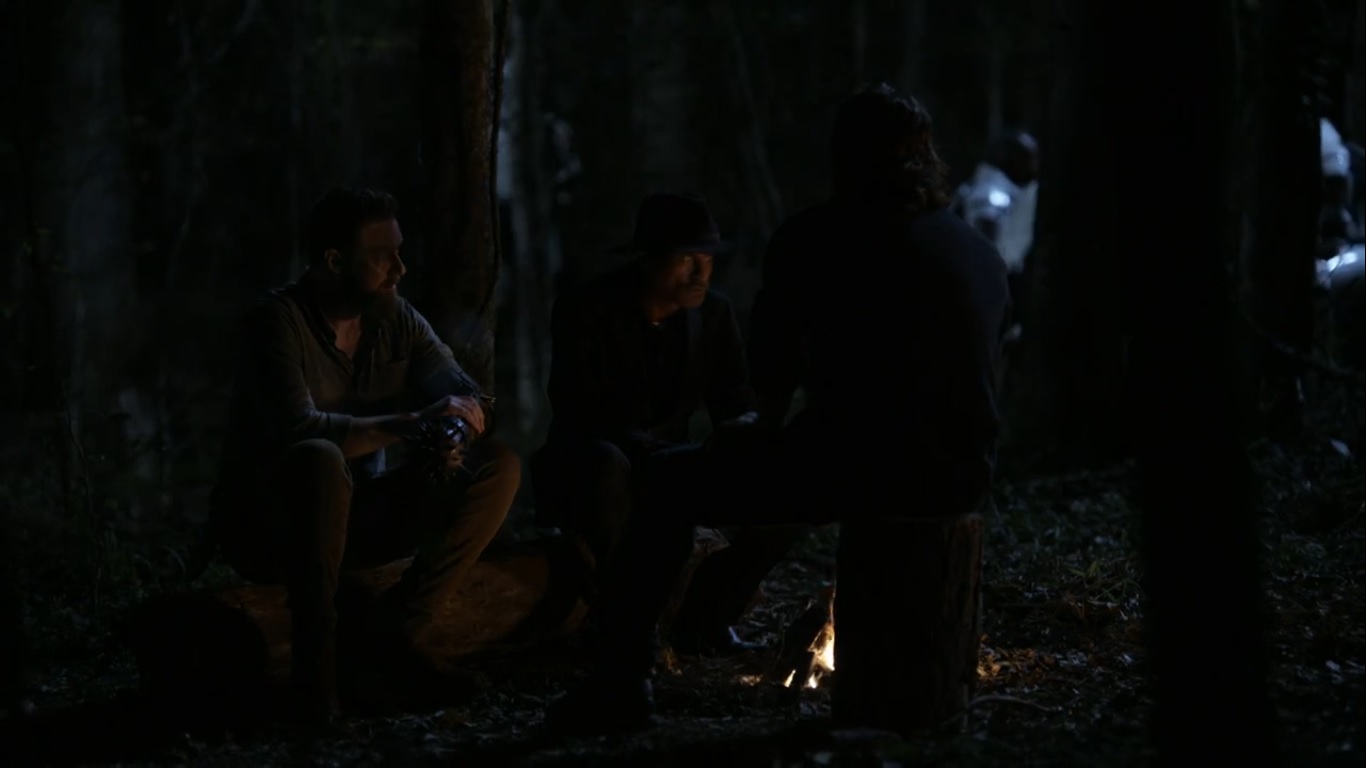 Hey, plot armor will do that for you. But more than that, the killers escaped, Lance was called, and here we are. Of course Lance doesn’t buy this. He asks for Daryl’s opinion, and with the amount of time he’s known them, Daryl believes that Aaron and Gabriel could handle themselves. Still, it doesn’t make sense to Lance for a bunch of crazed strangers to let Aaron and Gabriel live.
