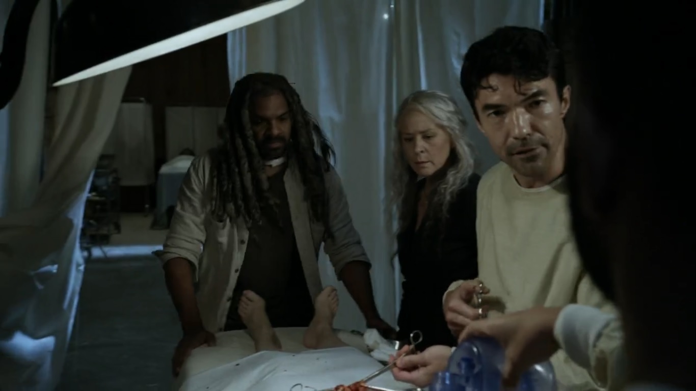 Ezekiel leads Carol and Tomi to a veterinary treatment area, which yeah, there are animals here, but there are also people being treated. Ezekiel’s been busy to repay his debt.