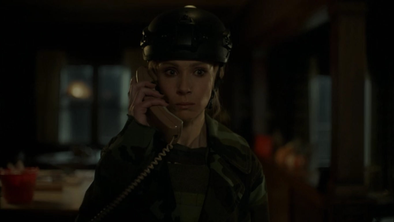 Roy heads home to speak with his wife, Karen, played by Rebecca Liddiard, and Oden, played by Michael Copeman, who asks Roy about another run on ammunition. But Roy has enough problems with weapons going missing and now the feds are on his ass. Roy looks over some photos, including a few wedding portraits where, next to him in one, is Dot.