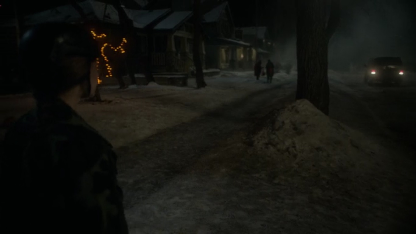 But before Dot can go Suzy Homemaker on someone’s ass, she gets a phone call. The caller, Roy, refers to Dot as ‘Nadine,’ but Dot, a bit spooked, hangs up. She leaves her home and joins Wayne and Scotty to trick or treat. Gator, meanwhile, arrives at a street sign, but the signs don’t match the GPS on his phone.