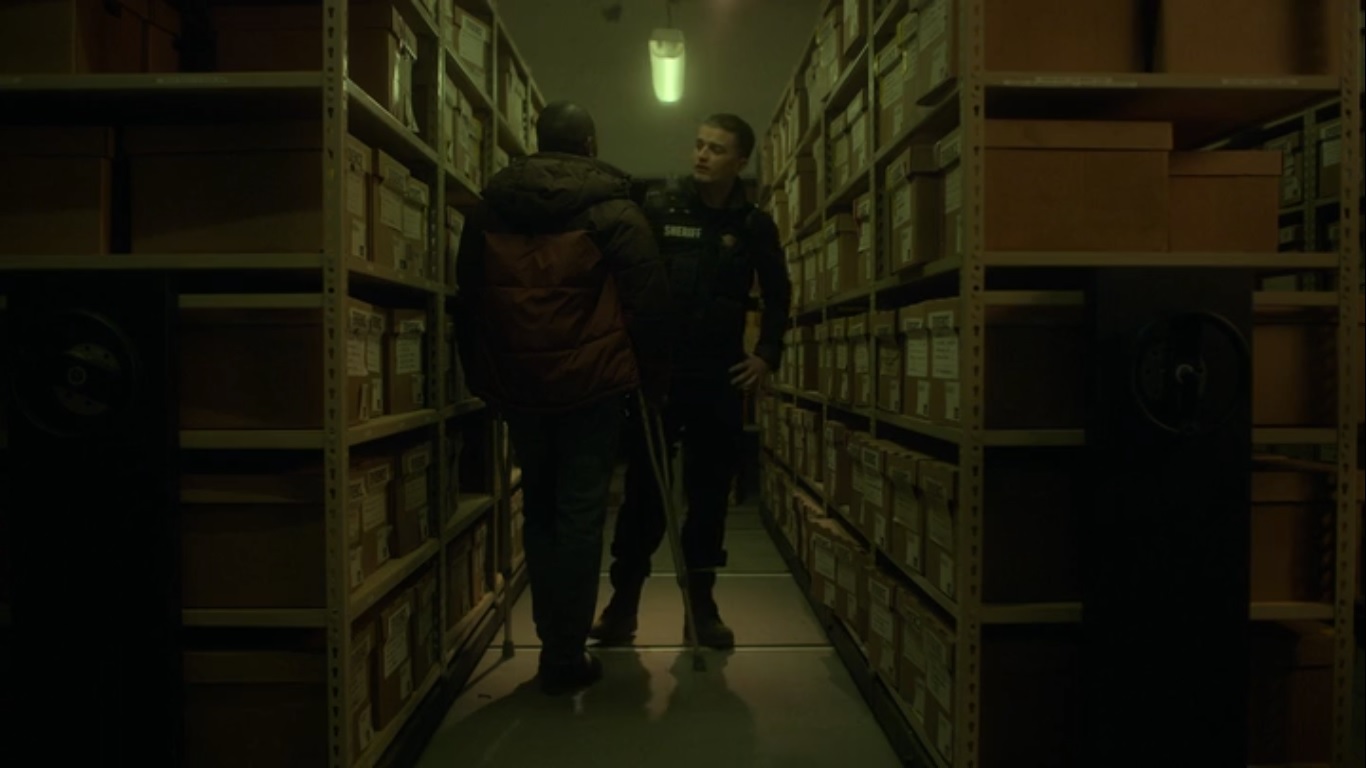 Deputy Farr arrives at the precinct, on crutches, and asks another officer about evidence from the service station incident. Indeed, Gator has arrived before Deputy Farr and is going through an evidence box. He pockets Donny’s wallet just as Farr comes downstairs and accuses Gator of stealing evidence.