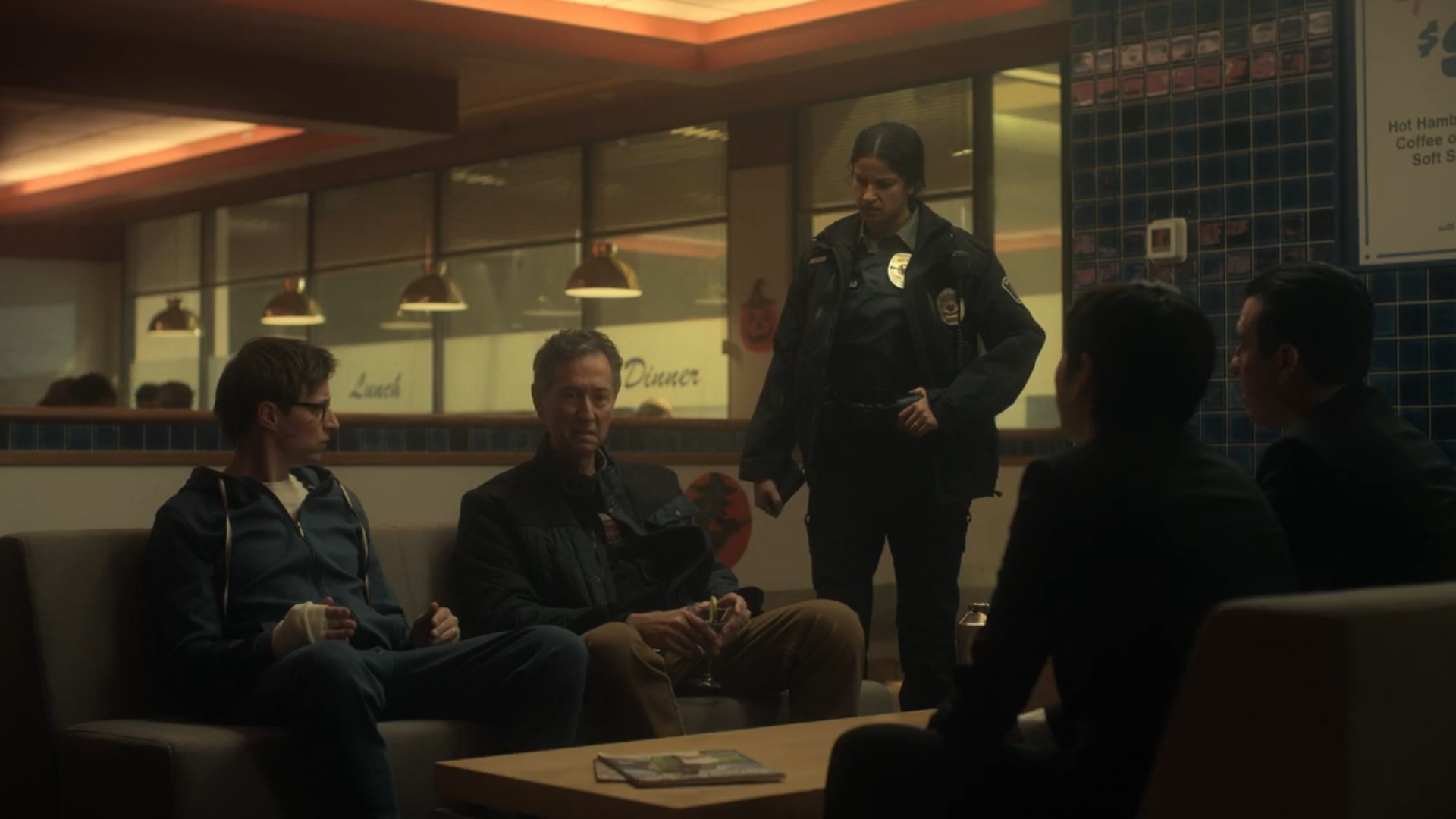 As if on cue, Indira shows up to break up the interview, saying the agents will want to hear what she has to say on the matter. Wayne asks if Indira has seen Dot, as she was supposed to visit him. Indira claims that she hasn’t seen her or Scotty who, Wayne points out, plays the drums. That’ll be important in a second. The agents leave, saying they’ll circle back with Wayne.