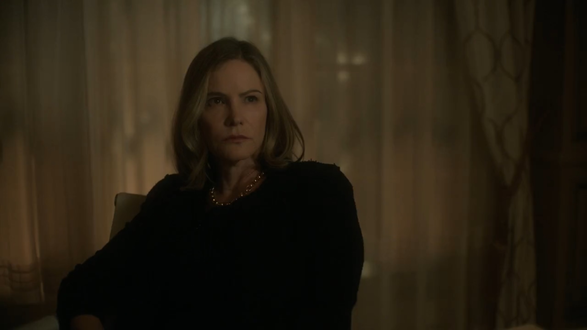 Indeed, the two arrive at the Lyon mansion. Jerome lets the two inside, and Scotty is quick to hug her father. Lorraine beckons Indira into her quarters, saying that women who apologize for things that aren’t their fault might as well have “Welcome Mat” on their foreheads.