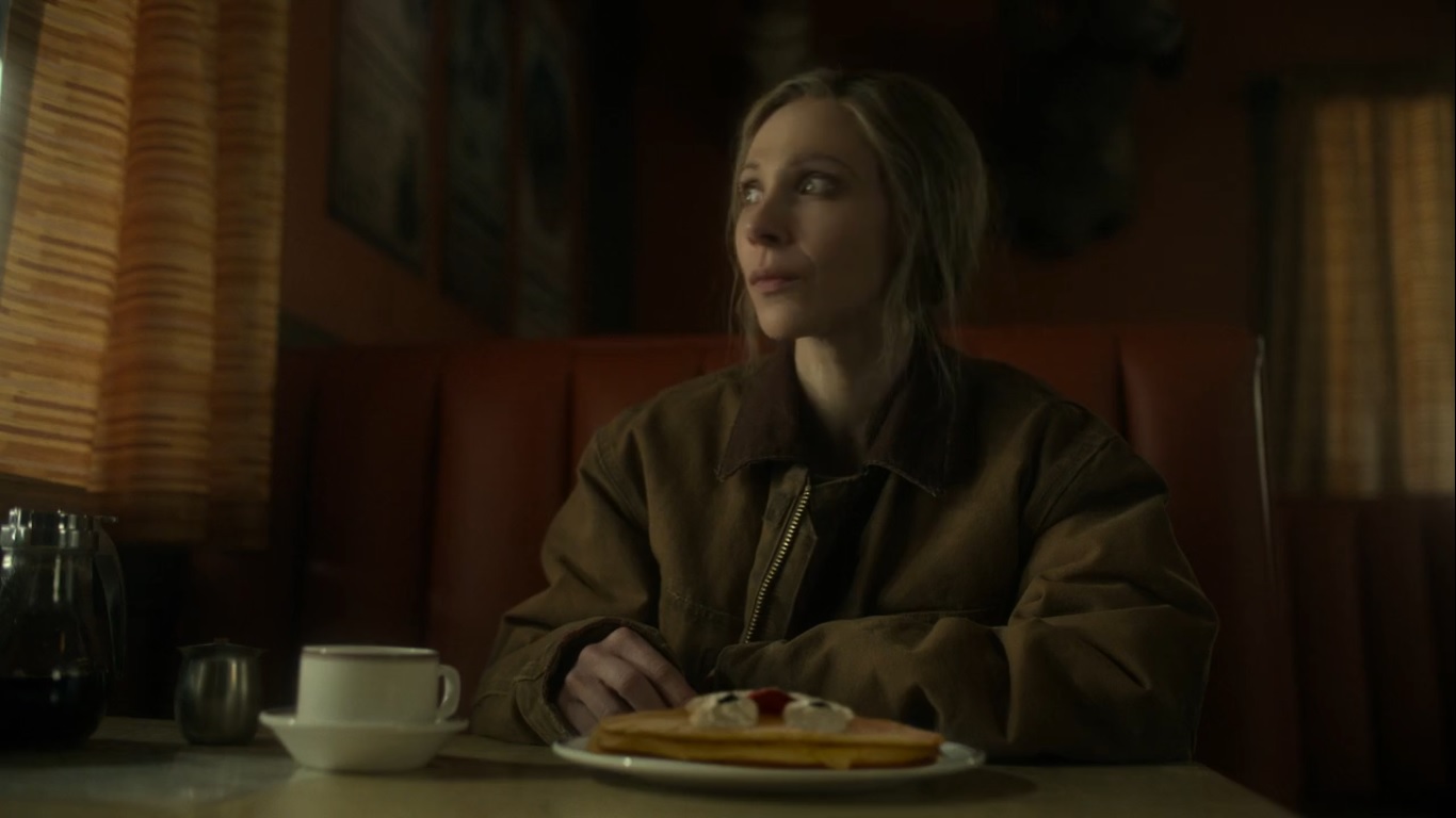 Following this, we rejoin Dot on the road. She briefly falls asleep at the wheel, but awakens and changes the radio station. She stops at a truck stop and takes a seat at a booth just as a woman serves her some coffee. Almost immediately, in fact! She asks if Dot is heading to or away from something. Instead, Dot asks if the place serves pancakes, which are apparently the best in the county. That’s debatable.