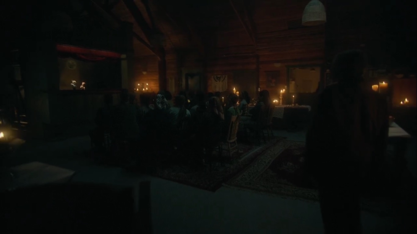 Night soon falls as Dot approaches a cabin in the woods. She enters and finds an audience of women watching a puppet show. The show displayed? The man hitting his wife over and over with a paddle for doing something wrong.