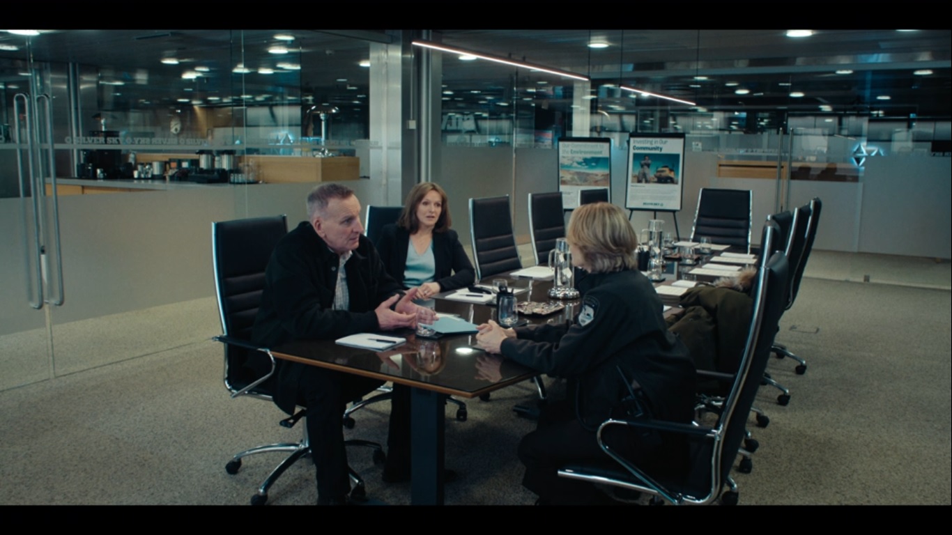 As does Liz, who gets a call from Ted about how furious Kate McKittrick is over the protest and wants answers. Liz pulls the jurisdiction card, saying this is the responsibility of the troopers. Liz agrees to go to Kate’s office, where Ted will also be. Liz then answers a call from Navarro.