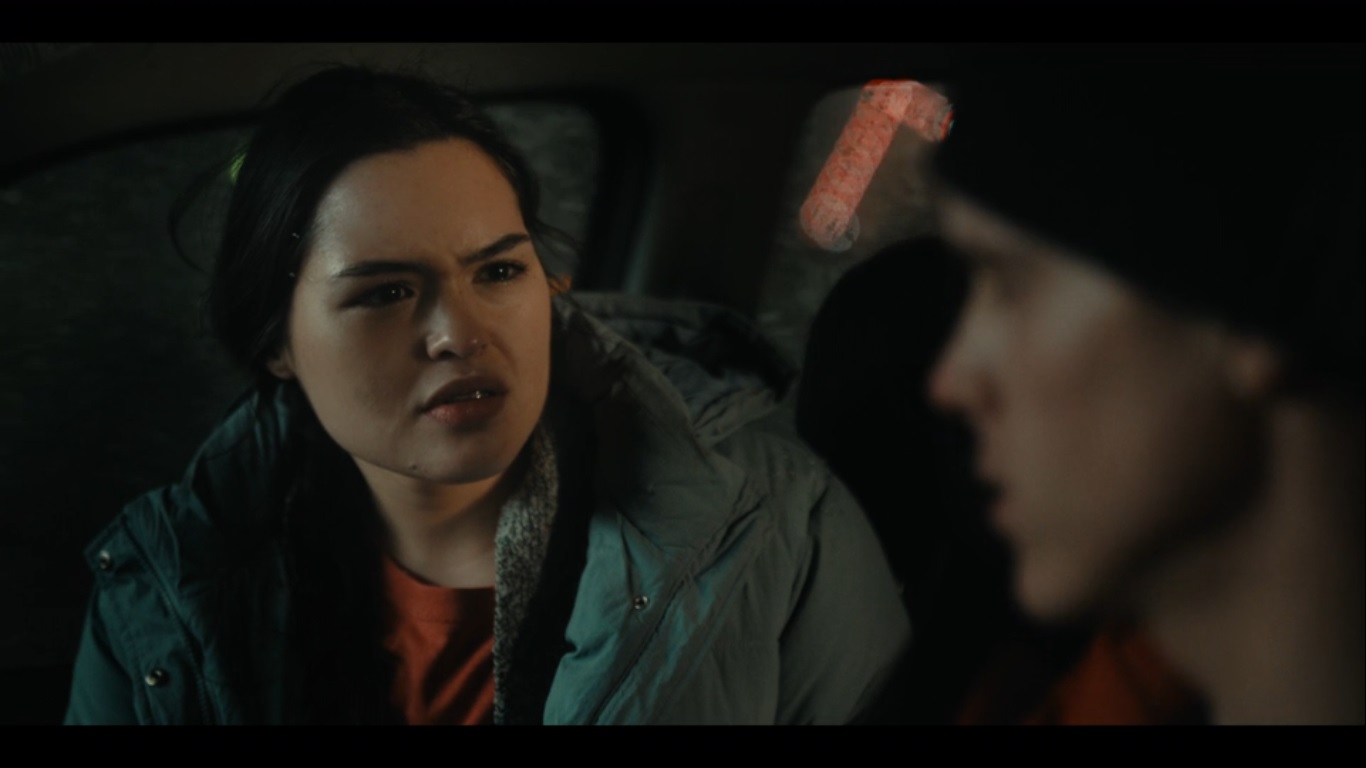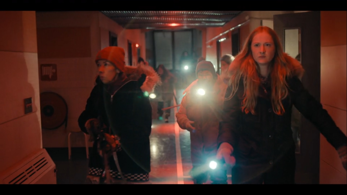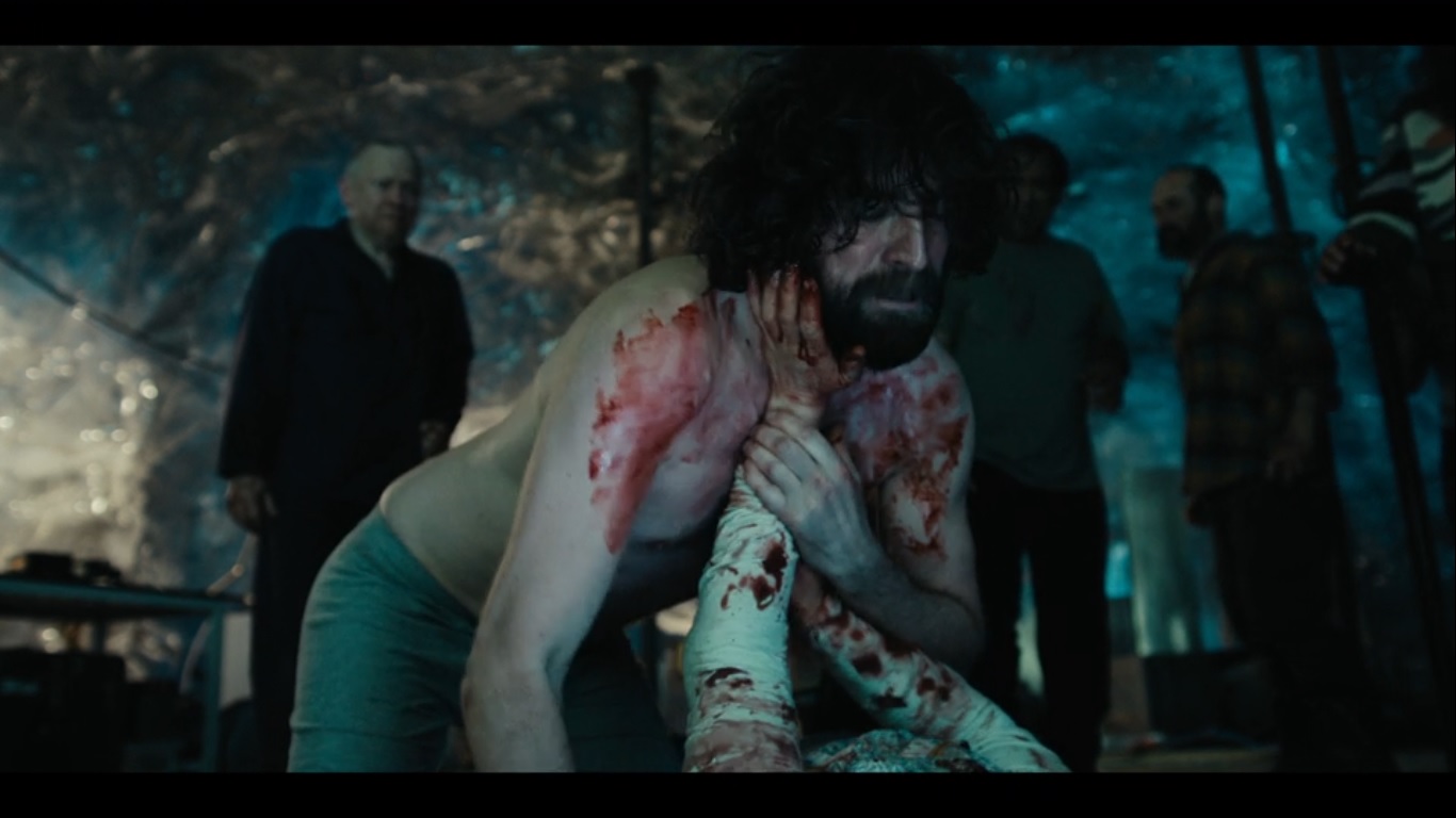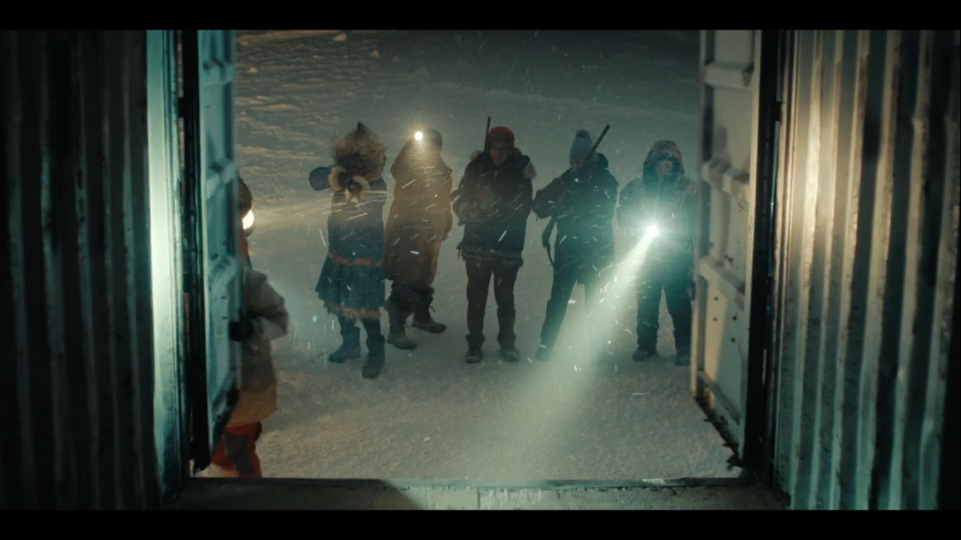 So let’s go with the theory that the women are responsible. Beatrice happens to notice the water going through the floor, finds a hidden facility, takes photos of evidence, and plans a revolt against the scientists because of their work polluting the land, as well as their involvement in Annie K’s death. There is no footage of the women storming the facility, or indication of tire tracks in the frozen ground. Just some folded clothes.