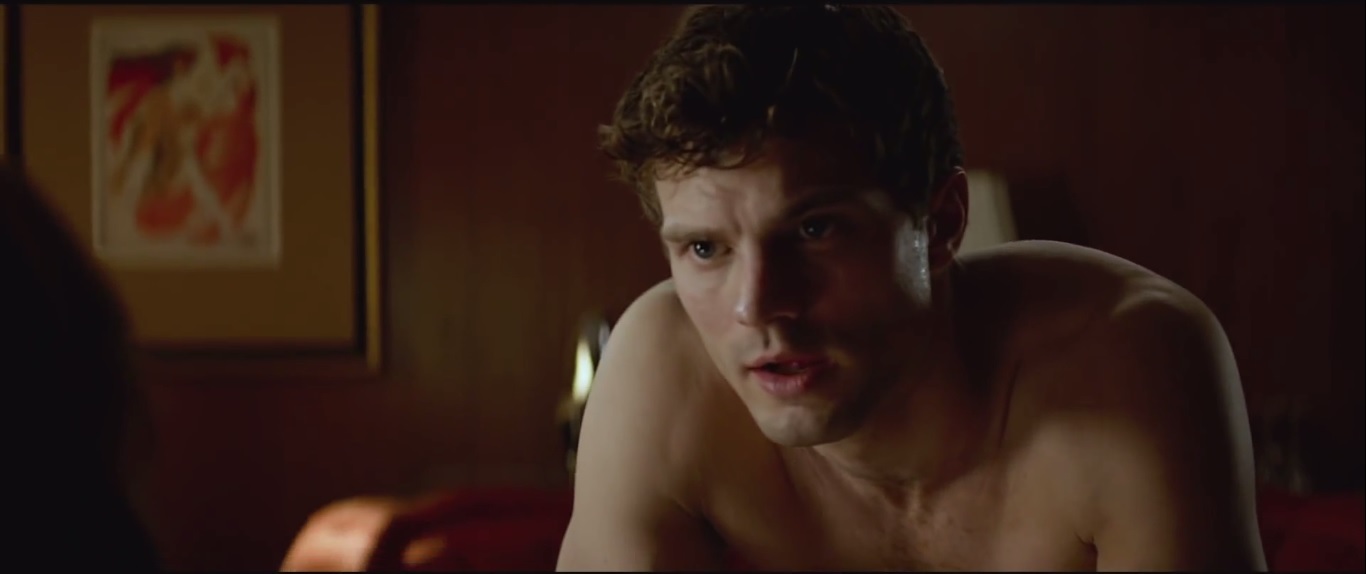 Fifty Shades of Grey- Christian takes off his shirt for some reason